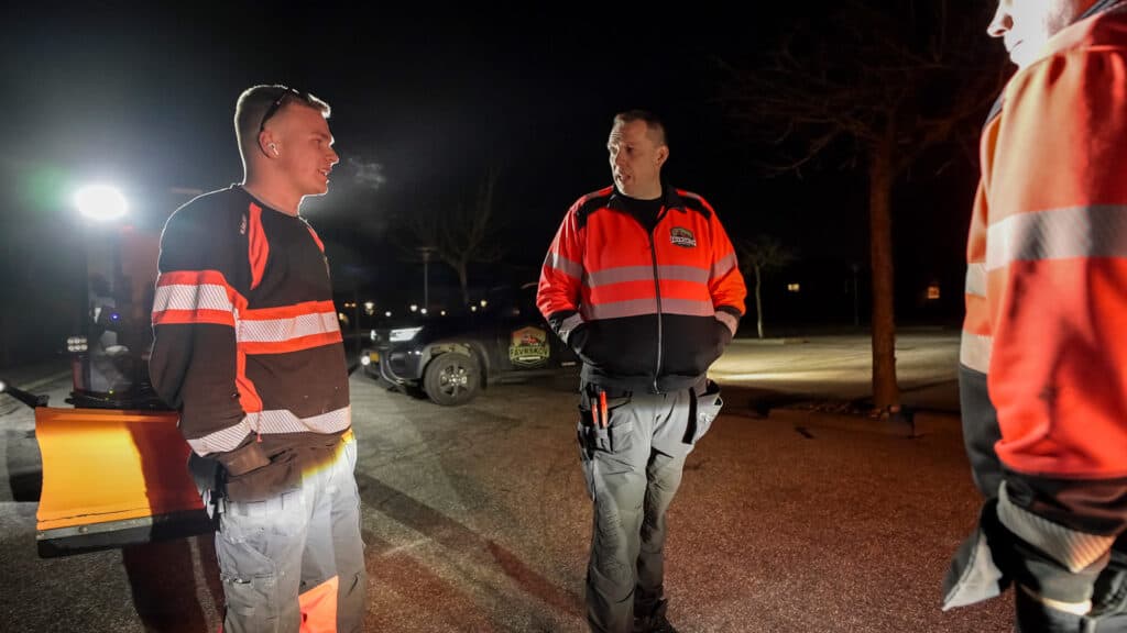 Vi overvåger vejrudsigter, temperaturer og glatføreprognoser, så vi kan rykke ud proaktivt, før sneen bliver et problem.